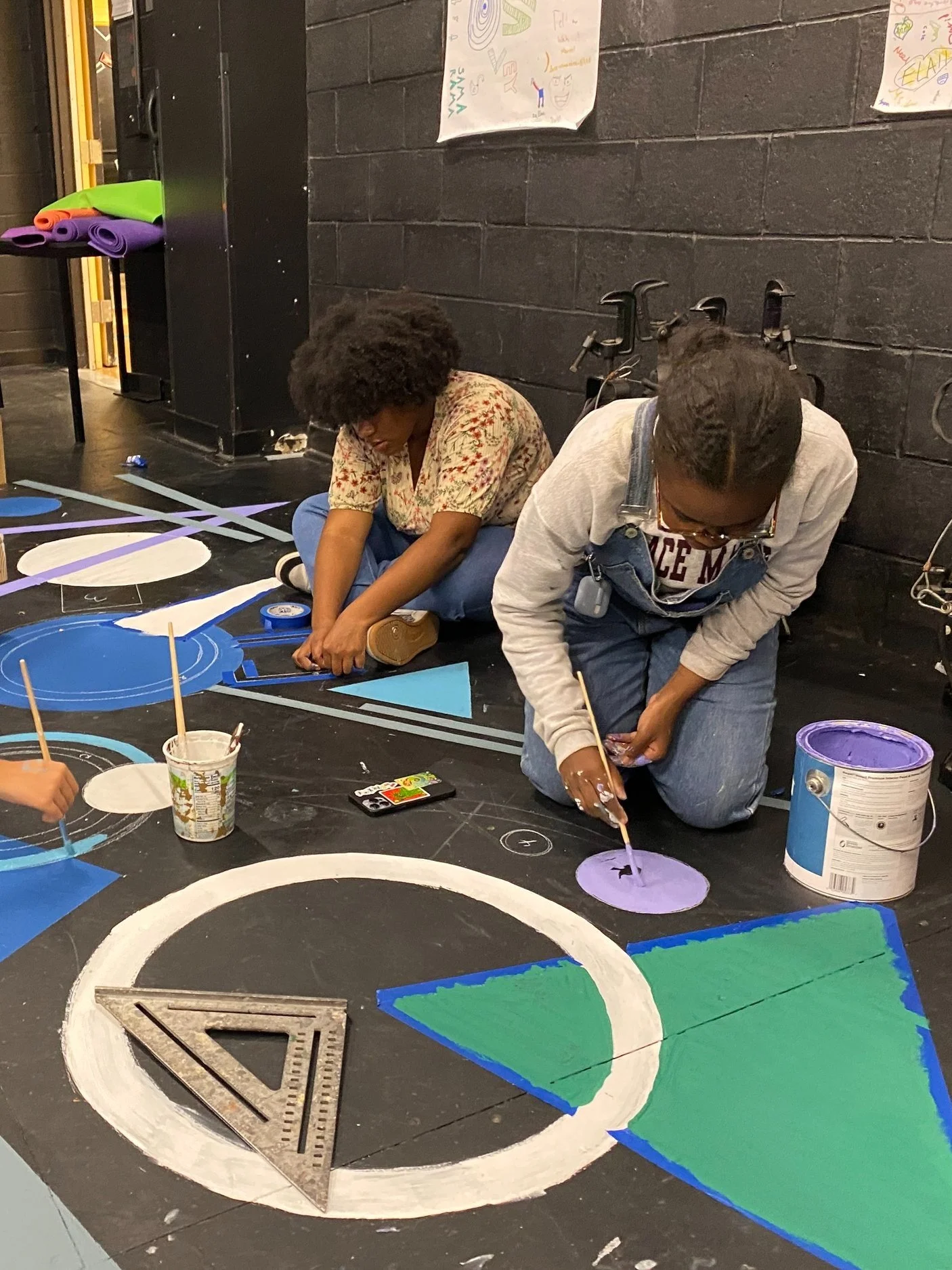The Good Doctor is based on several stories from Anton Chehkov, a Russian writer, so the floor treatment for this design is loosely inspired by Russian artist Wassily Kandinsky’s abstract work. The restricted cool color palette serves to convey physical and emotional coldness, as the play’s theme of solitude, should evoke a cool feeling in the audience.